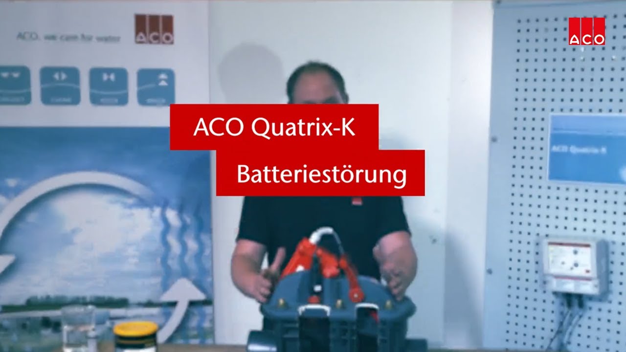 Wir zeigen, wie Sie eine Batteriestörung am Rückstauautomaten ACO Quatrix-K V3.0 für fäkalienhatliges Abwasser erkennen und beheben. Wenn die Dioden Batterie und Sensor blinken und die Anlage einen Alarmton abgibt, sind schnelle Maßnahmen gefragt. Wir erläutern die Prüfung des Batteriepacks, Ersatzteilbeschaffung und zeigen, wie Sie das neue Batteriepack einsetzen und anschließen.